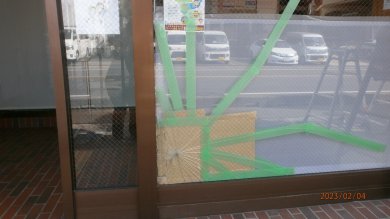 医院の入り口のガラスが割れてしまったとのことで、ガラスの入れ替え工事をさせていただきました。