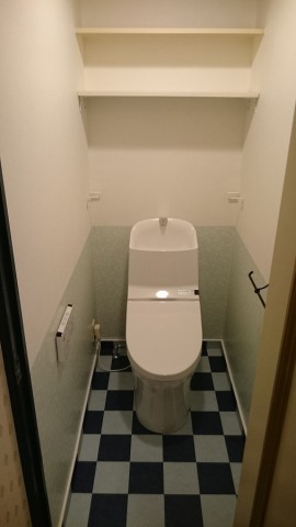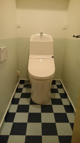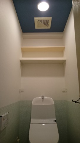 青が基調の内装になり、とてもオシャレなトイレになりました!