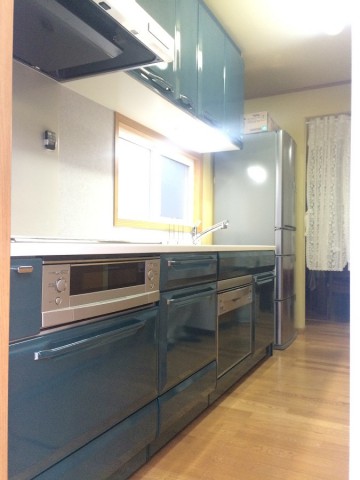 重厚感のある深緑色のお洒落なキッチンに生まれ変わりました!