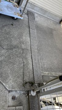 段差ができていたテラスの溝蓋を撤去し、鉄板を敷いてフラットにしました。