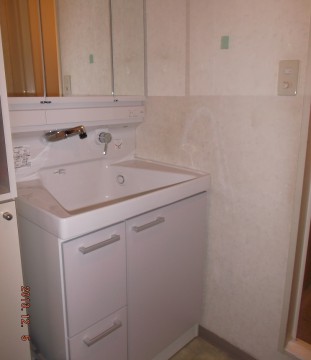 洗面化粧台も、リフォーム前はボウルが全面に飛び出した形になっていましたがリフォーム後はスッキリした形になり、奥行きを感じさせないです。