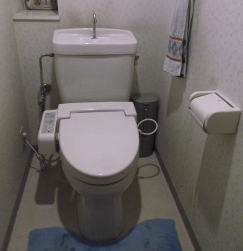 組合せ便器のピュアレストQRに、ウォシュレットの中でも比較的グレードの高いアプリコットF1Aを付けたトイレです。