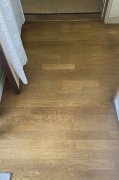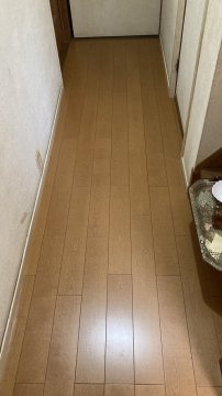 廊下のフローリングの腐食部分を補修して新しいフローリングを貼りました