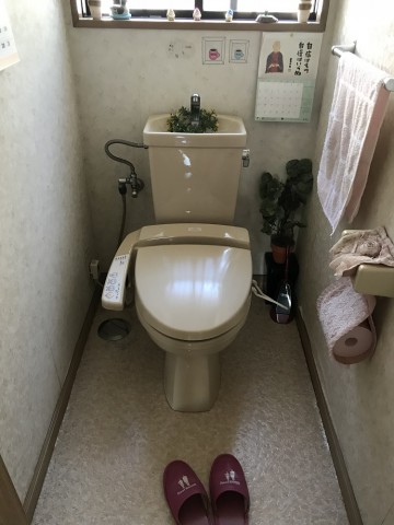タンク付きの便器にシャワートイレ(便座)が取り付けられているトイレです。