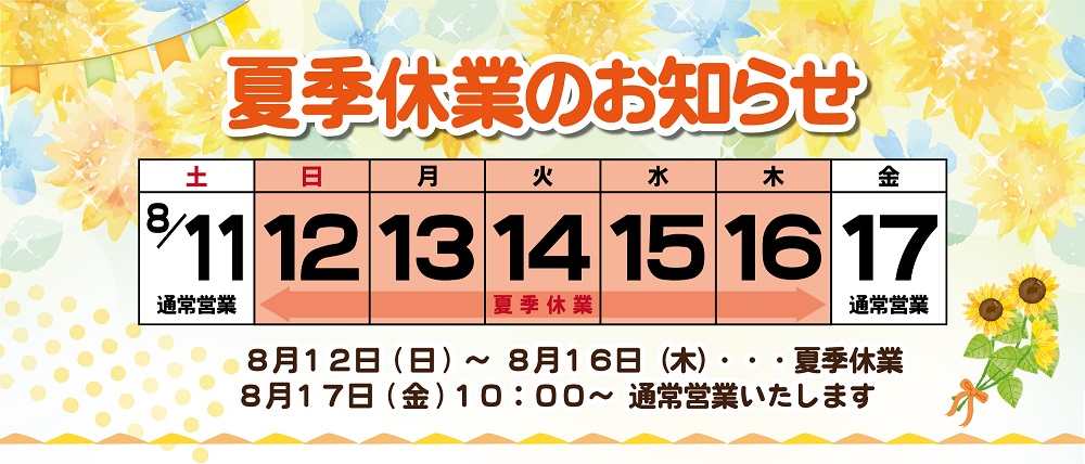 夏季休業のお知らせ